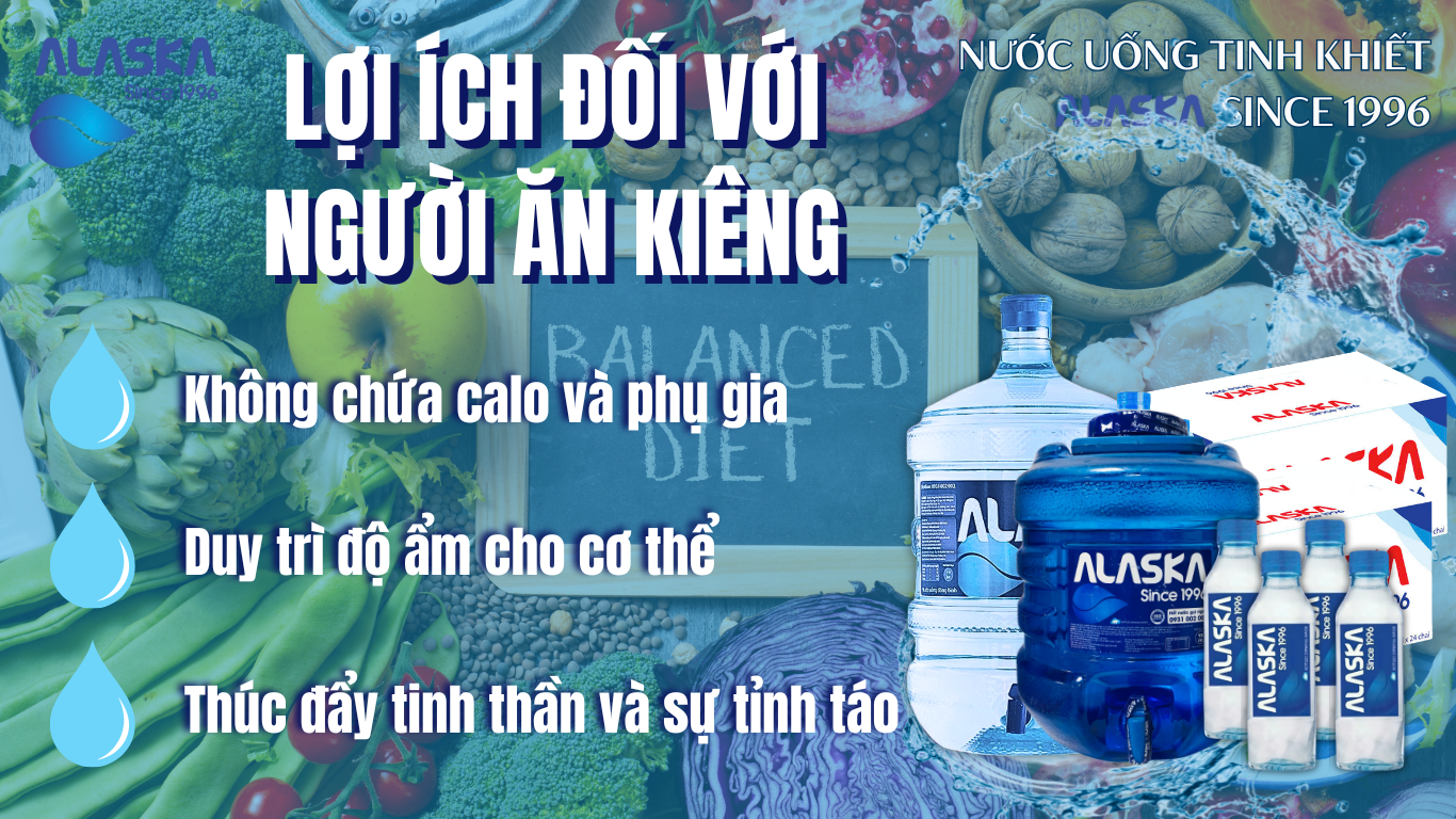 Khi theo đuổi một chế độ ăn kiêng, việc chọn loại nước uống phù hợp là vô cùng quan trọng. Nước tinh khiết Alaska là sự lựa chọn lý tưởng giúp bạn duy trì một chế độ ăn kiêng lành mạnh mà không lo lắng về calo hay các chất phụ gia không mong muốn. Với nguồn nước tinh khiết được kiểm định nghiêm ngặt, Alaska không chỉ giúp bạn giữ gìn vóc dáng mà còn hỗ trợ quá trình giảm cân một cách an toàn và hiệu quả.
