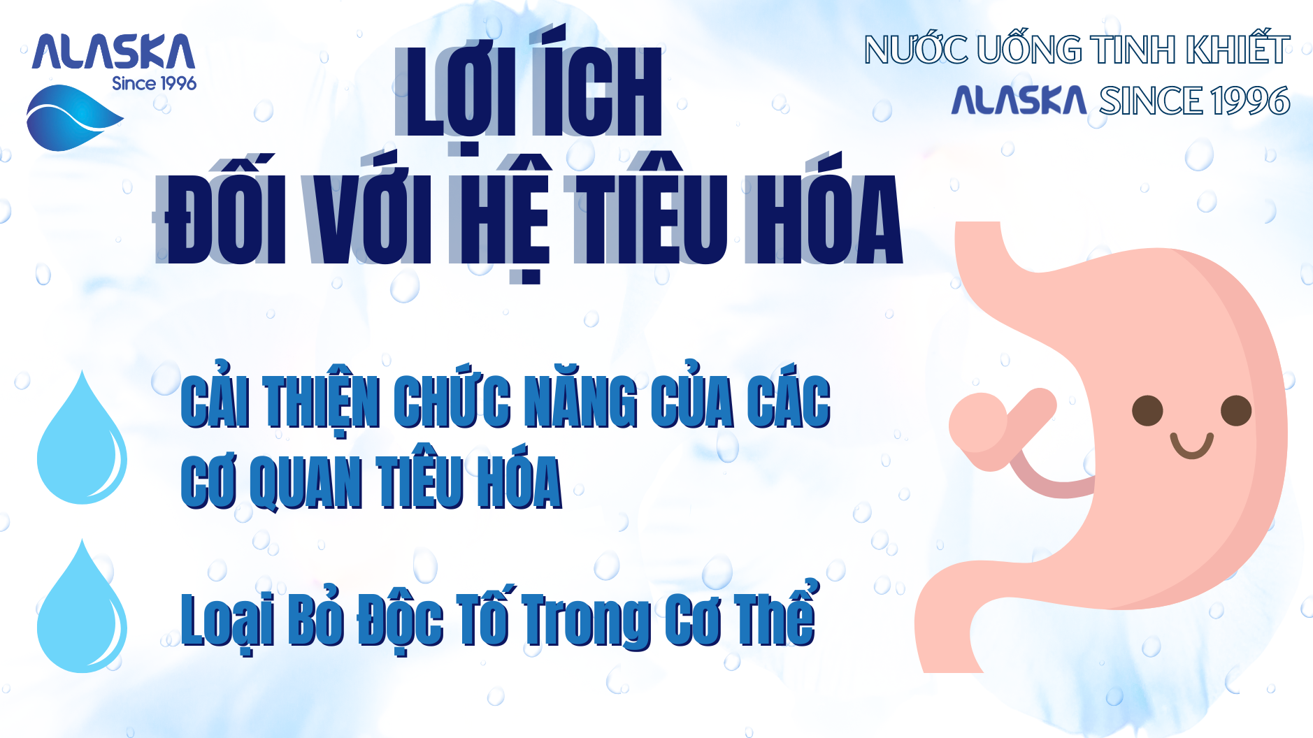 Nước tinh khiết Alaska không chỉ là một nguồn nước uống an toàn, sạch sẽ mà còn mang lại nhiều lợi ích cho hệ tiêu hóa. Việc sử dụng nước tinh khiết hằng ngày giúp cơ thể loại bỏ độc tố, tăng cường chức năng tiêu hóa và giảm thiểu nguy cơ mắc các bệnh về đường tiêu hóa.